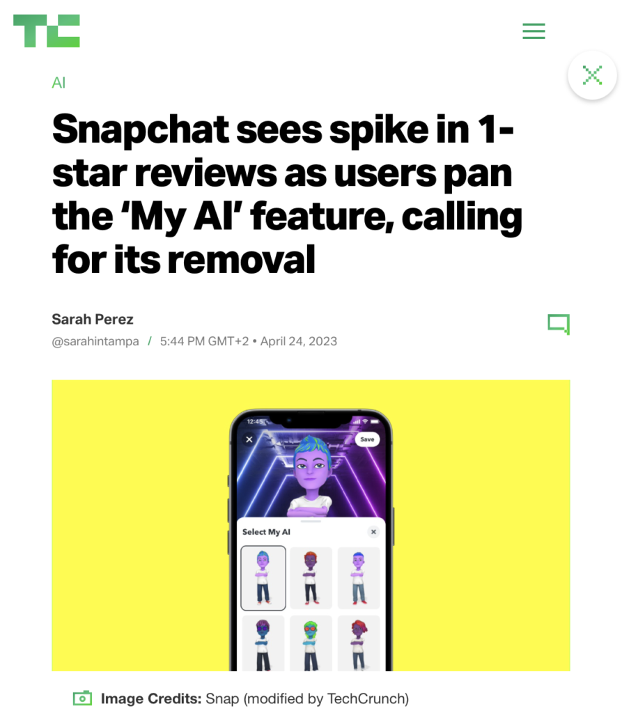 Selon les données de Sensor Tower, une entreprise d’analyse d’applications, la note moyenne de Snapchat sur l’App Store est passée de 3,05 étoiles à 1,67 étoiles une semaine après le lancement de My AI pour les utilisateurs gratuits, avec 75% des critiques étant une étoile. De plus, le nombre de critiques publiées par jour a été multiplié par cinq en une semaine. Apptopia, une autre entreprise d’analyse d’applications, a également signalé une tendance similaire, avec “AI” étant le mot-clé le plus mentionné dans les critiques de Snapchat sur l’App Store au cours des sept derniers jours, avec 2973 mentions. Bien que les critiques positives aient également augmenté, de nombreux commentaires négatifs ont été publiés même dans les critiques cinq étoiles.